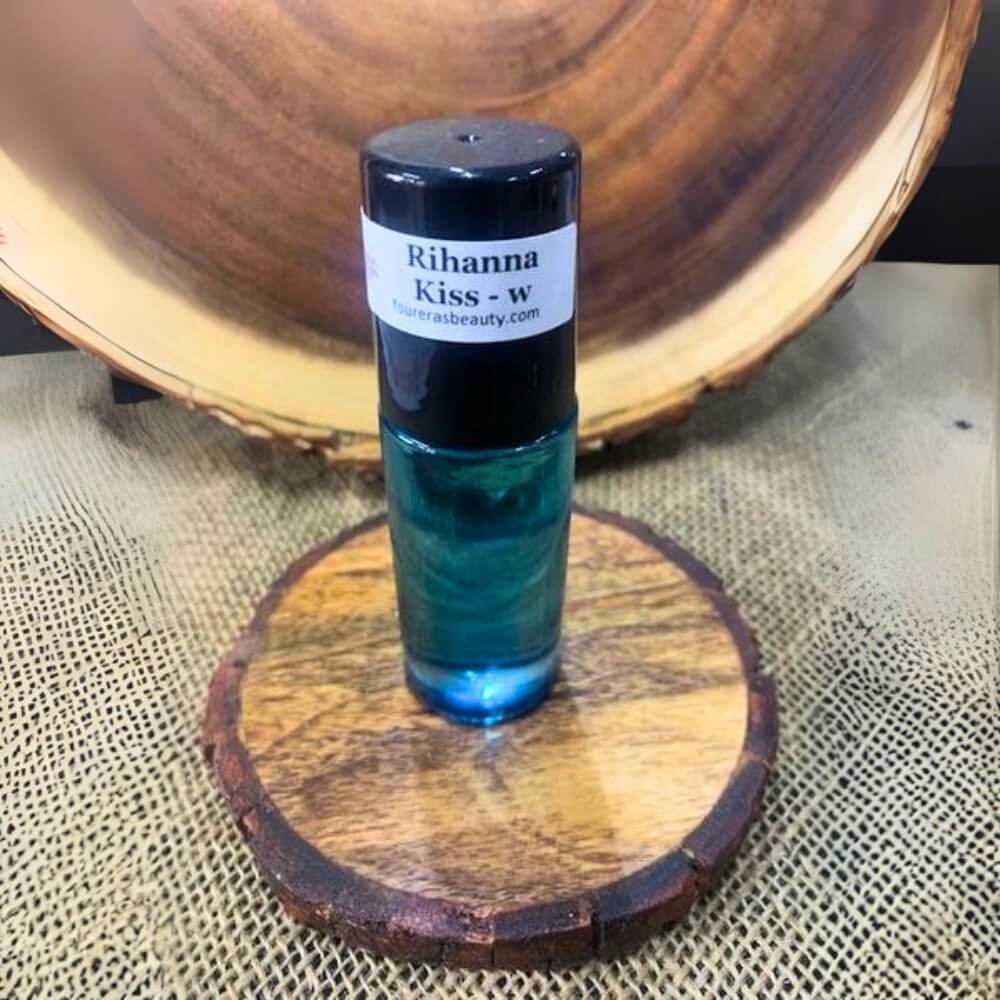 Rihanna Kiss-inspired fragrance oil, natural carrier oils (almond, jojoba, or coconut oil).